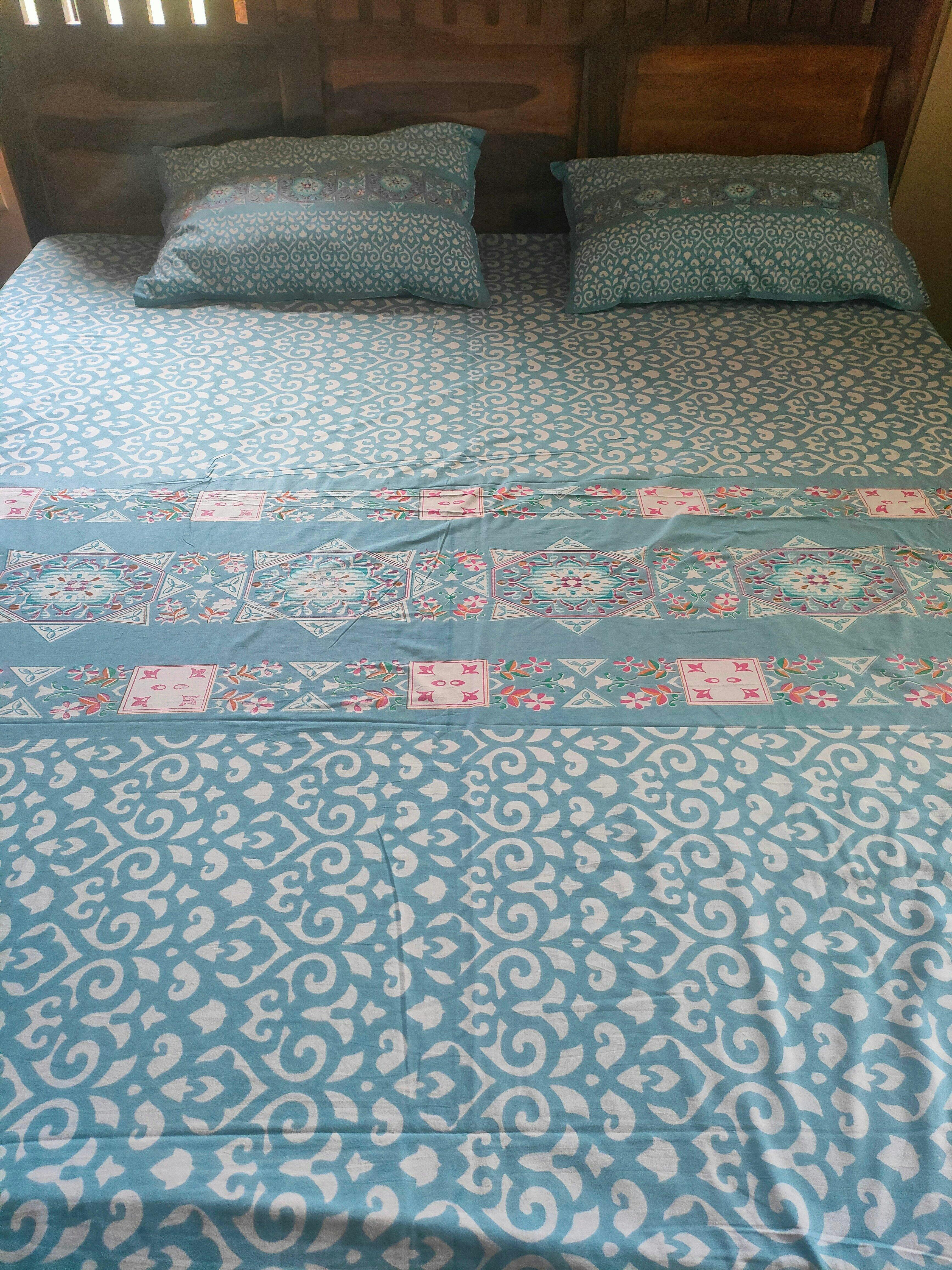 Signature Pure Cotton Bedsheet – Blue Ornamental Mandala Elegance